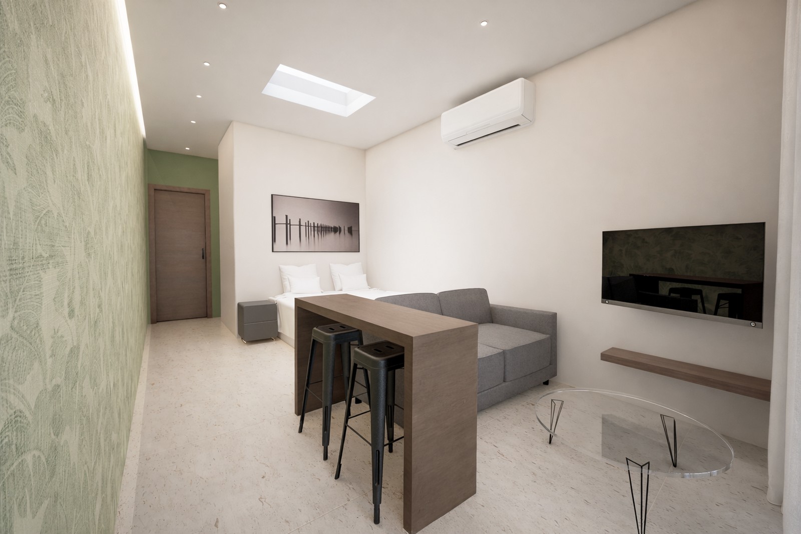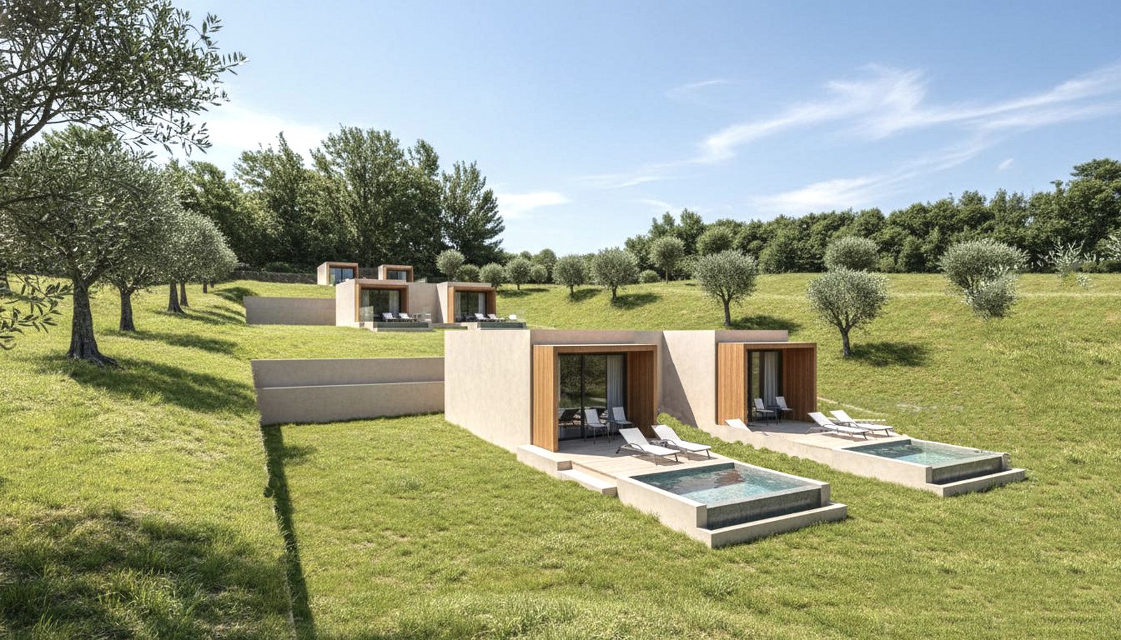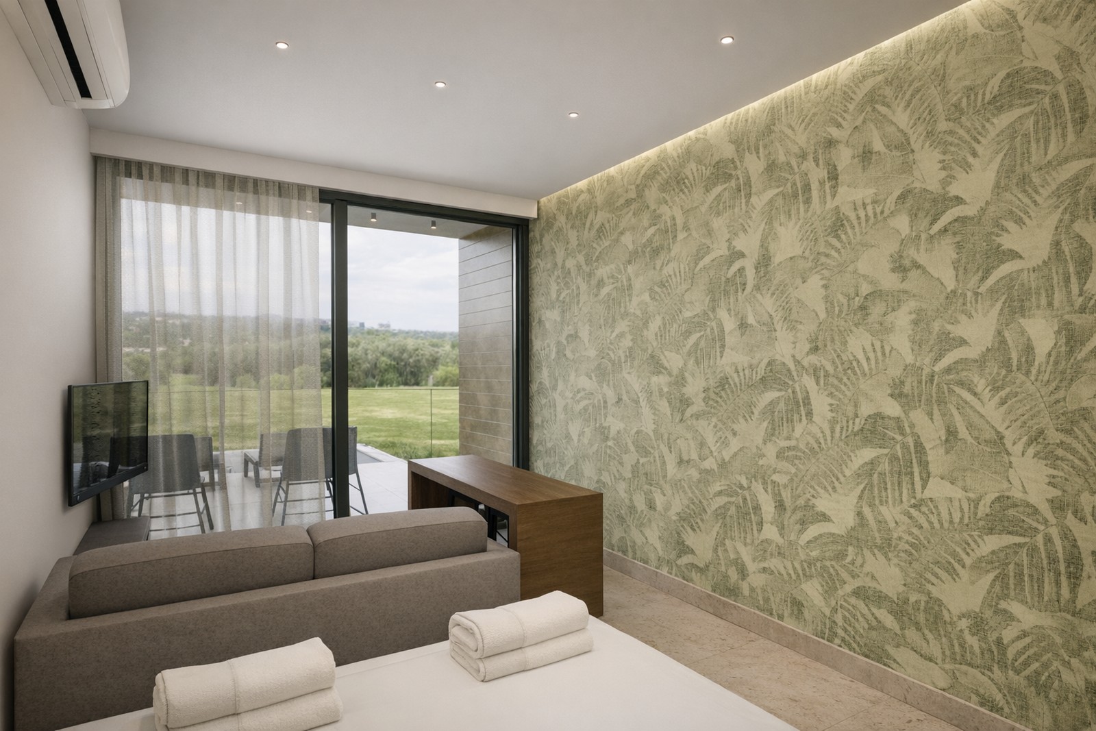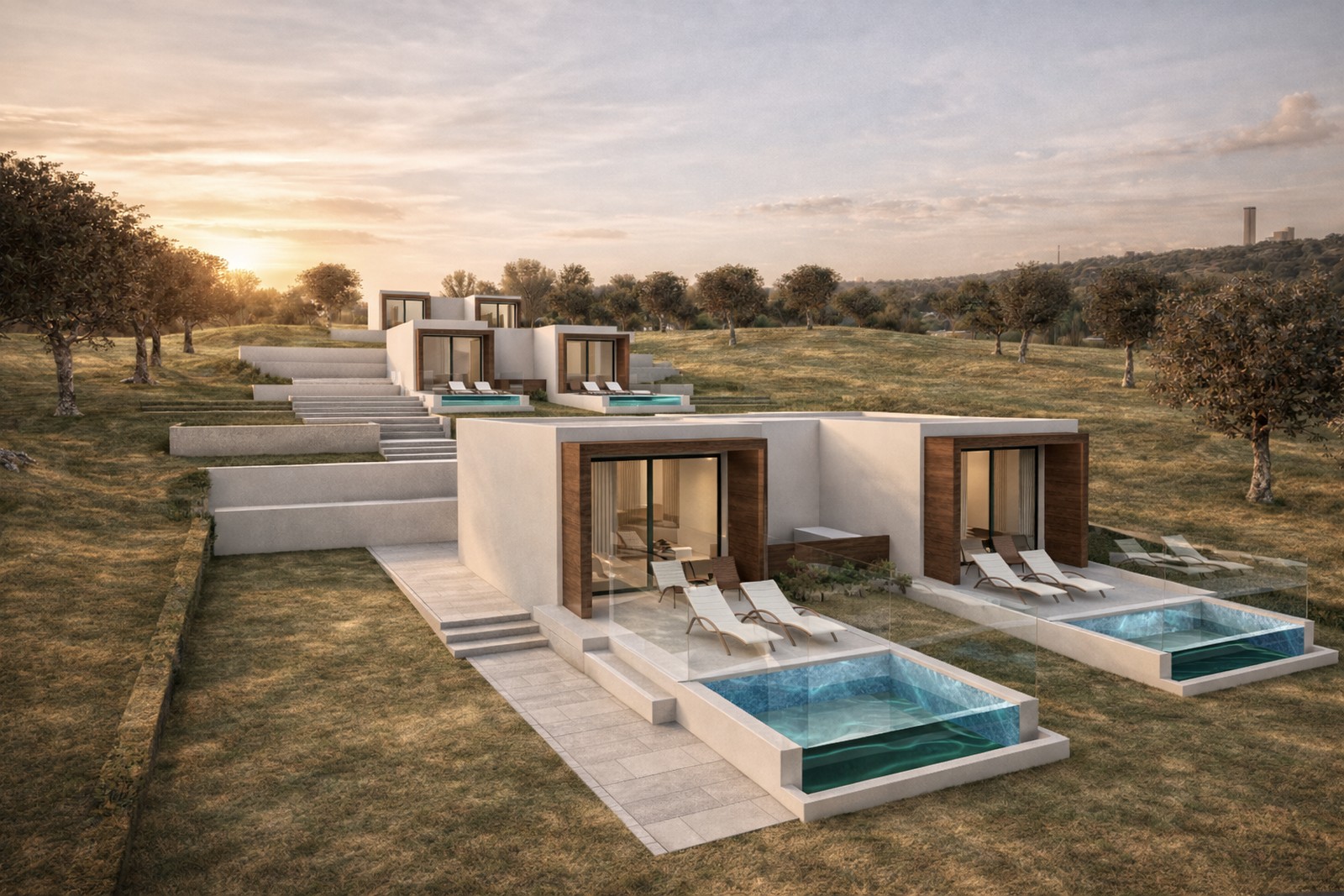 Η μονάδα μπορεί να συνοδευτεί από διαμορφωμένο εξωτερικό χώρο – ιδιωτική αυλή – ενώ παρέχεται η δυνατότητα προσθήκης πισίνας υπερχείλισης, αναβαθμίζοντας περαιτέρω την εμπειρία διαμονής και δημιουργώντας ένα ολοκληρωμένο περιβάλλον υψηλής αισθητικής.